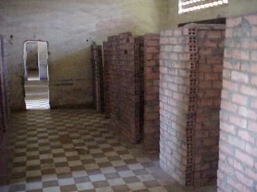 I went to see the famous S-21 high school in Pnomh Penh, the Cambodian equivalent of Dachau, except this one was operated by the Khmer Rouge almost exclusively for the benefit of its own citizens from 1975-79. Impressive. VERY impressive. And so recent! Of course I'm not saying that in an admiring manner at all. It's just amazing the imagination some people can have when it comes to physically and mentally destroying others. The cells, the instruments of torture and execution, the gravesites, all contained in an enclosure designed originally for the education and betterment of people, not their elimination. And, like the Nazi's in WWII, the Cambodians documented their accomplishments in an incredibly detailed fashion, numbering the arrivals, taking photographs (mug shot style), recording interviews, etc. Hundreds of these pictures cover the walls of the exhibition rooms - most of them are young adults, though old men and women and even children are pictured. Most look almost resigned, though many are actually smiling, as though anticipating a quick interrogation and then release. One of these rooms, the last in a series, contains a "map" of Cambodia covering most of the back wall composed entirely of human skulls. Like I said, impressive.