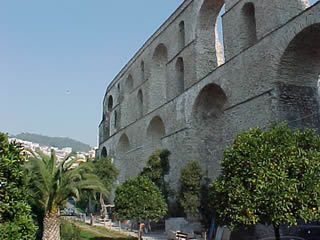 | Saturday farmer's market in Kavala, by the sea. | An aqueduct built by Suleiman (sp?) the Magnificent in the 1600's to supply old-town Kavala with water. |