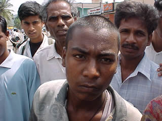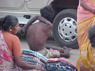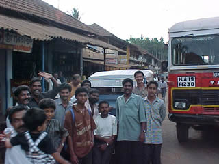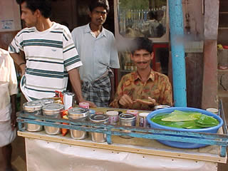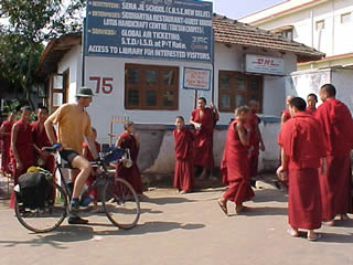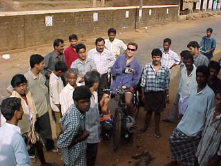 I rode with Carl and Lara for several more days until we got to Mysore and I boarded the train for Madras. We had some wonderful times together - stayed at the Tibetan community near Madikeri and endured the Indian policeman who felt it necessary to come and demand permits from all the westerners visiting there (they weren't necessary). He threatened to kick us out (at 7PM at night on our bikes) and we thought he was after baksheesh - I made a few exploratory statements to the effect, but he wasn't interested. Maybe he gets more from the Tibetan hotel owners as he was harassing them too, or maybe he was just throwing his weight around. At any rate, he ended up telling us we could stay the night, but would have to leave the next day. Since this was already our plan, problem solved. "Yes sir, yes sir, no problem sir, you're right sir" as we cursed him under our breath. C'est la vie... The Tibetans were wonderfully hospitable and friendly - probably just happy to be out from under the threat of the Chinese government. The Indian officials must seem small-time compared to that. We had great fun in some of the little villages we stopped in away from the coast. They see westerners pretty infrequently so we were pretty unique to them, and our presence always drew a quick crowd once they realized we were friendly. Carl and I snapped a couple of pics that I've included to give an idea of what it's like to be in the middle of it all. When I pull out the digital camera and these guys can actually see the pics as they're taken, they're amazed. And if you offer to take one of them all there's an instant melee of people trying to get into the scene. At one point in a tiny little village street, I had 20 people, 2 taxi drivers, and a bus driver (in his bus!) trying to squeeze into the viewfinder! Passing by a roadside vendor, the thought popped into my mind to tell him that "the flies you're selling are starting to attract dead fish there, guy!" I resisted the temptation, the language barrier being what it is. Just another reason to pass on the seafood away from the coast. Hell, its also a pretty good reason to go vegetarian here! I haven't been able to do it yet, though - I like my chicken too much. Just wish I could get a taste of beef sometime... Contrary to popular belief, English is NOT a common language between India and the west - they speak Hinglish here. It looks like English, it sounds like English, but brother, you ain't communicating! A friend suggested that all this made good material for a stand-up comedy show after the trip. I'm thinking of routine entitled "How to say yes but mean no in 17 different countries". I swear to god I can't tell the difference between an Indian 'no' and 'yes', especially if they only use gestures and head movements! Both this and the vague (or wrong) answers to questions got to be a running joke between me and Carl and Lara. Here's a sample - Me: "Can I have no chillies in my omlette, please?" Waiter (in an accent that sounds EXACTLY like Apu of the Simpsons!): "Eggs is there!", accompanied by a wagging of the head that looks like a cross between a shake and a sustained nod. This is a actual exchange and is not at all atypical! But I did get the chance to use the language barrier to my benefit once. Getting ready to board the train from Mysore to Chennai (an overnight journey), I was told several times by the deputy-sub-chief station baggage officer (or whoever) that I'd have to remove my panniers from the bicycle before putting it in the luggage car. Since I knew that this was actually up to the luggage car attendant, I nodded but ignored him and left the rear rack loaded up, taking only the front bags off. I really didn't want to have to manhandle and secure 5 separate bags for the duration of the journey if I could help it, and the rear panniers were padlocked shut anyway. So when the train pulls up, I found the luggage car and lifted the bike in myself. The attendant stops me as I'm getting off and says in Hinglish "luggage open!!!" (which translates as "you can't leave the bags here, sir"). I refused to take them off, so he said "cykel only!!" and demanded to see my luggage form. Now, when I had checked the bike in on arrival, the office guy had written on the form in English "road racing bicycle" and I hadn't seen any need to correct him. So when the attendant pointed to these words and said "see, cykel only!! Luggage is not there!!", I pointed to the words "road racing", patted the panniers, and said loudly "this road racing!!!" This confused him into hesitation long enough for me to take the form back and beat it out of there before he could change his mind. Ha! Score one for the away team! The train journey itself was uneventful and actually pretty comfortable. I slept in a shared compartment with an Indian family, all nice and cozy with a wool blanket tucked in around me, snoring my fricking head off 'cause of the dry a/c air. (I actually woke myself up with it at one point!) Good thing I had my earplugs in. Wonder what that family thinks of westerners now... Re the luggage form I filled out for the bicycle: there's a form for EVERYTHING in this country - you have to fill one out just to cross the road here! Checking into a hotel is a 20 minute process, and using the post office entails at least 3 different lines (weighing the package, buying the stamps, getting a registration form as a receipt - all in different parts of the office). The only group that doesn't have to fill out a form are the folks applying for a driver's license. That's 'cause they come for free in boxes of Crackerjack here. It's an old joke, but it still applies: "There's only one rule (on the road) here - there are no rules!". I've ridden in motorized tricycle taxis that ran red lights and cut across one way streets right in front of traffic cops. I read complaints about them every day in the newspaper (that's how you get something official done here - you complain publicly but a